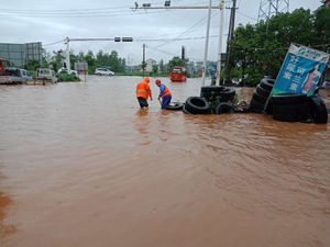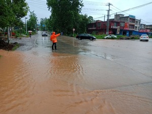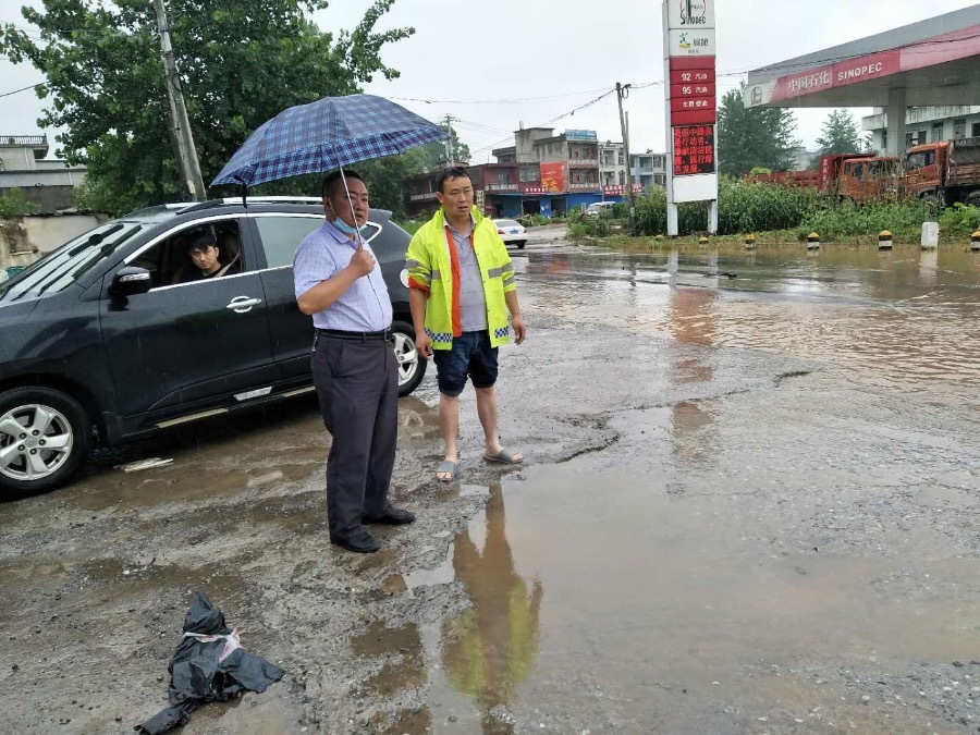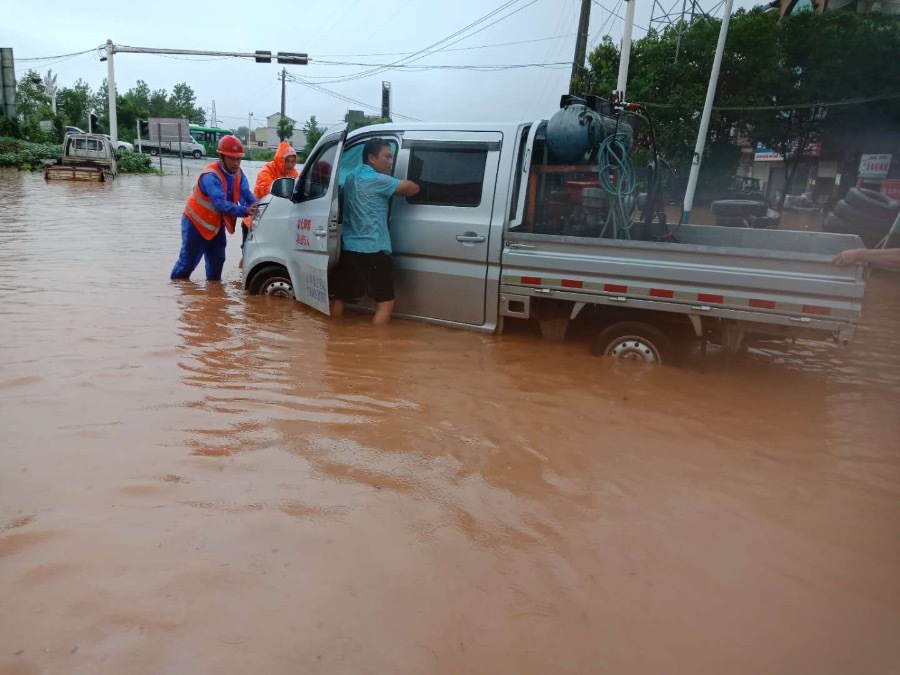6月22日夜间至23日凌晨,经过一夜的大暴雨,京广线106国道K1305+000米处沿镇路口因处于低地段,路面积水严重,积水最深处达40cm,交通接近中断,率洲公路养护站职工于早上6:30第一时间赶到现场,冒着大雨对泄水口堵塞物进行清理,引导小型车辆从加油站绕行,对故障车辆进行清理,确保大型车辆可以正常安全通行。