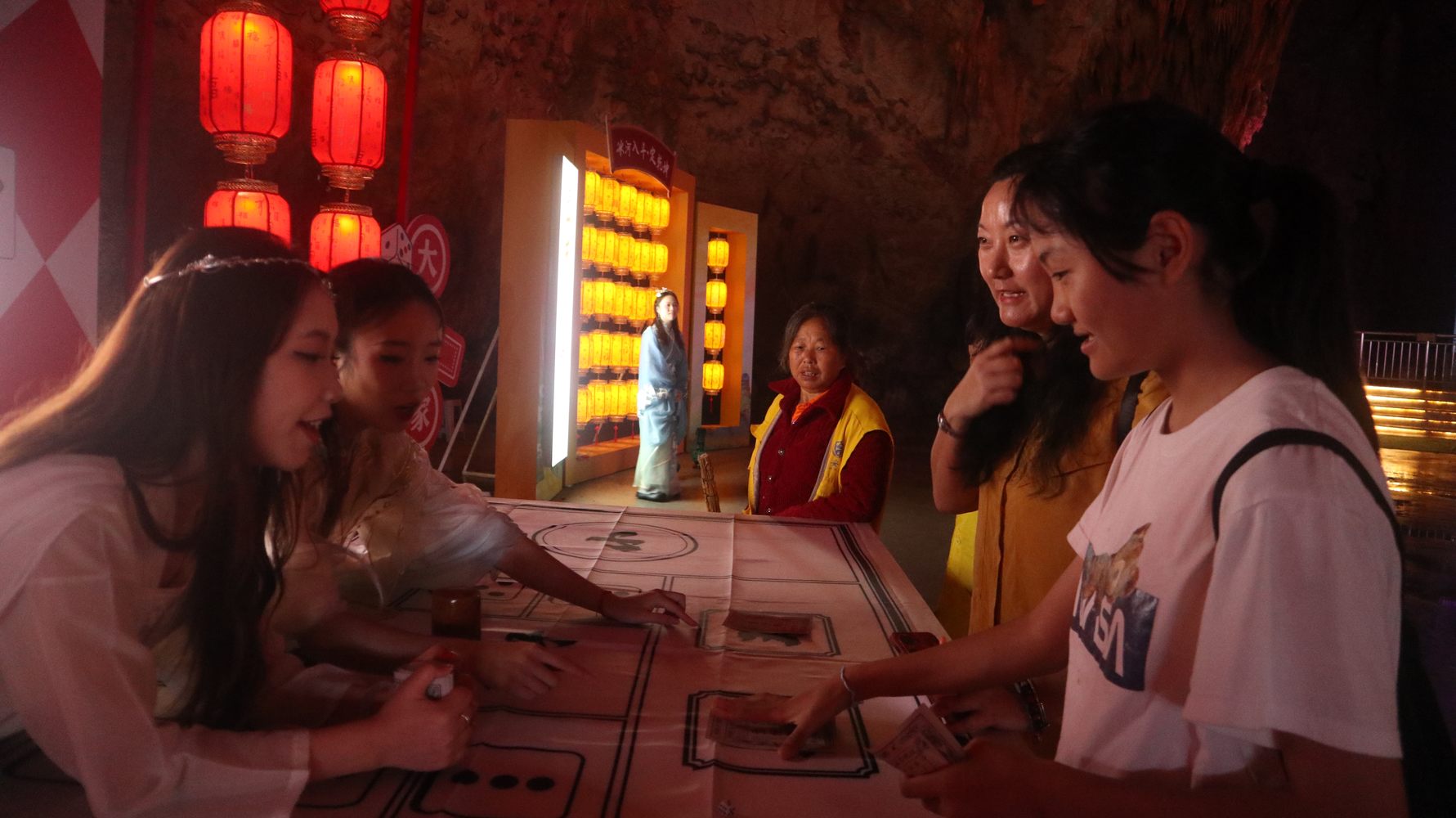 “洞外非常热,但洞内就很凉快,还有很多的小姐姐和我们一起玩,非常开心。我们是江苏无锡来这旅游的,景区给我们免了门票。而且我们是自驾,村民让我们直接把车就停他们门口,我觉得这一点是很棒的。”江苏游客于女士笑着介绍说。
