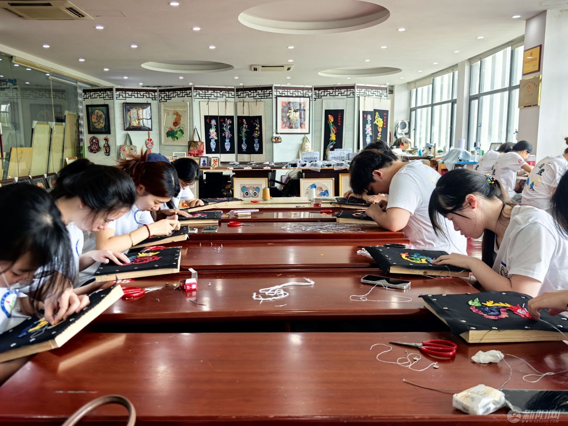在阳新布贴传承人洪老师的指导下,队员们亲手尝试这项古老技艺。从剪、粘、堆、叠到贴,平凡的边角布料在黑色底布上化作凤凰、瑞兽、花卉等吉祥图案,浓烈的民间审美让队员们惊叹不已。一位队员感慨道,这不仅是一门手艺,更是民间智慧与生活哲学的传承。