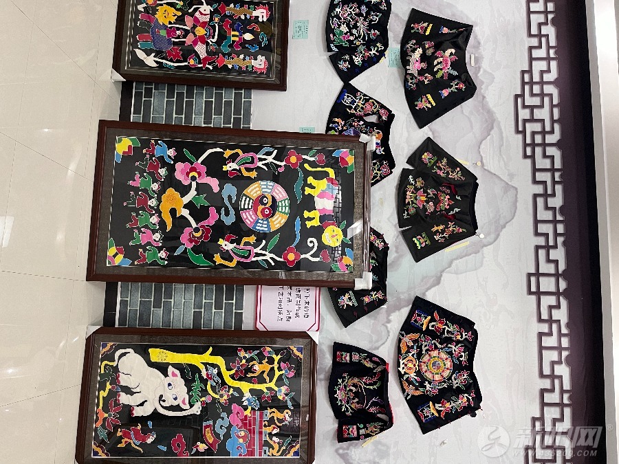 阳新布贴,源自鄂东南的传统布艺,2008年被列入国家级非物质文化遗产名录。其以黑色底布衬托五彩图案,融合剪纸、刺绣、绘画等多种工艺,被誉为“荆楚民俗文化的活化石”。其色彩鲜明热烈,造型朴拙厚重,凝聚着浓郁的楚文化底蕴。