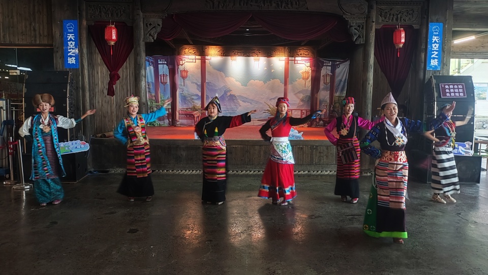 当天上午,天空之城景区成为了连接鄂藏两地的桥梁。活动中,主办方详细介绍了山南作为“藏文化之源”的深厚底蕴。随后,一段原汁原味的藏舞在景区内惊艳上演。舞者们华丽的服饰和奔放的舞姿,与仙岛湖的浩渺烟波相映成趣,瞬间点燃了现场气氛,引得众多本地游客纷纷驻足拍照、鼓掌叫好。