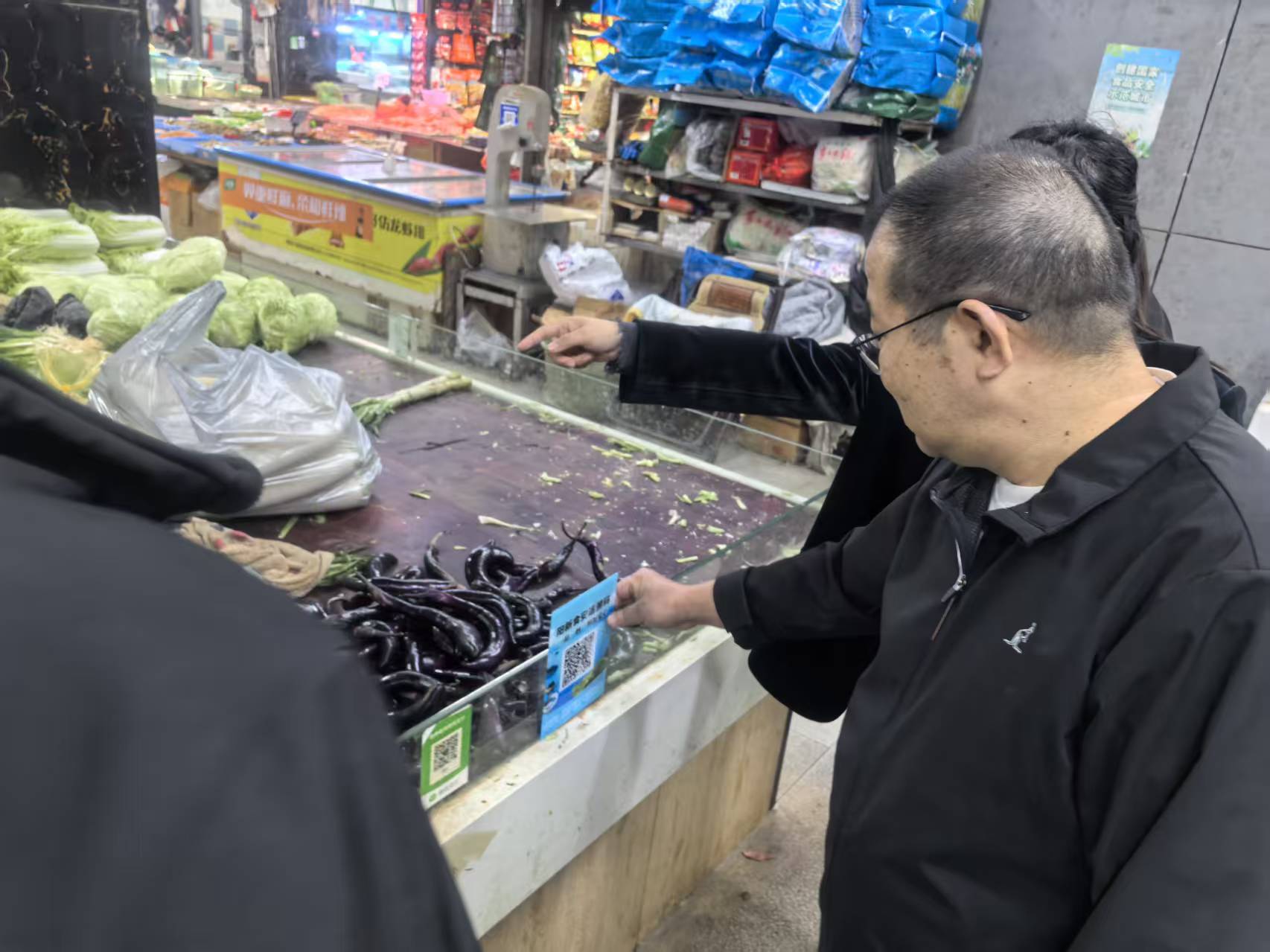 在中心农贸市场和西商农批市场,工作人员深入商户开展现场培训,指导“溯源码”的张贴与使用,并联合市场内快检室工作人员加强对食用农产品的抽样检测工作,确保数据实时上传。目前,两个市场已基本实现“溯源码”全覆盖,消费者扫码查询率显著提升。