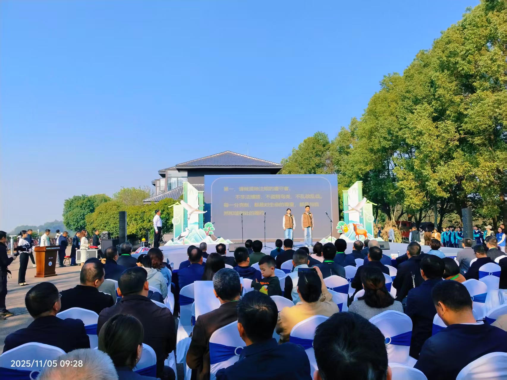 活动当天,网湖湿地自然保护区候鸟翩跹,与会嘉宾在网湖生态墙飞鸟集签名践诺。湿地巡护员、志愿者代表等共同宣读保护倡议。《羽翼的温度》情景剧等节目以艺术形式传递湿地价值。启动仪式后,嘉宾实地考察鸟文化体验区等地点,直观感受网湖湿地保护成效。