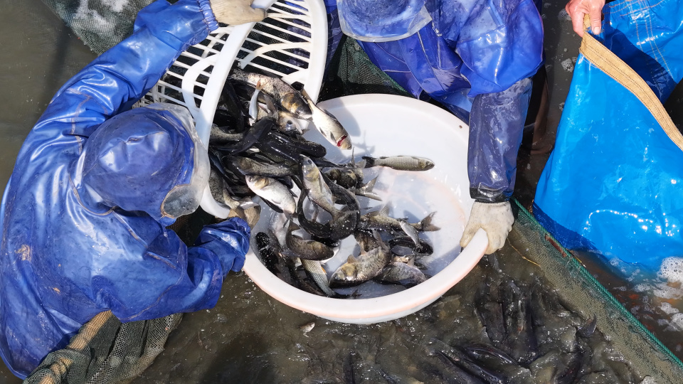 本次丰收捕鱼的现场,宛如一幅动人的渔歌画卷。在朝阳的映照下,波光粼粼的鱼塘里,工人们协作配合,肥美的鳜鱼在网中翻腾跳跃,溅起阵阵水花,与人们脸上洋溢的喜悦笑容交织在一起,奏响了乡村振兴的“丰收曲”。