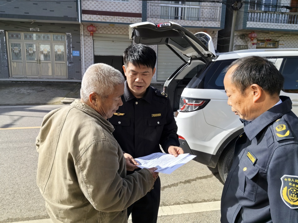 “乡亲们,这水是我们的‘保命泉’,污染水源不仅害家人,还得负法律责任。”11月25日,王英镇饮用水源保护区,县农业综合执法大队种植业中队的执法人员正拿着宣传手册,向围观村民掰开揉碎讲解护水知识。连日来,这支执法队伍穿梭在王英镇、三溪镇的水源保护区,以“立牌警示+田间普法”的组合拳,让“法治护水、全民有责”的理念走进千家万户。