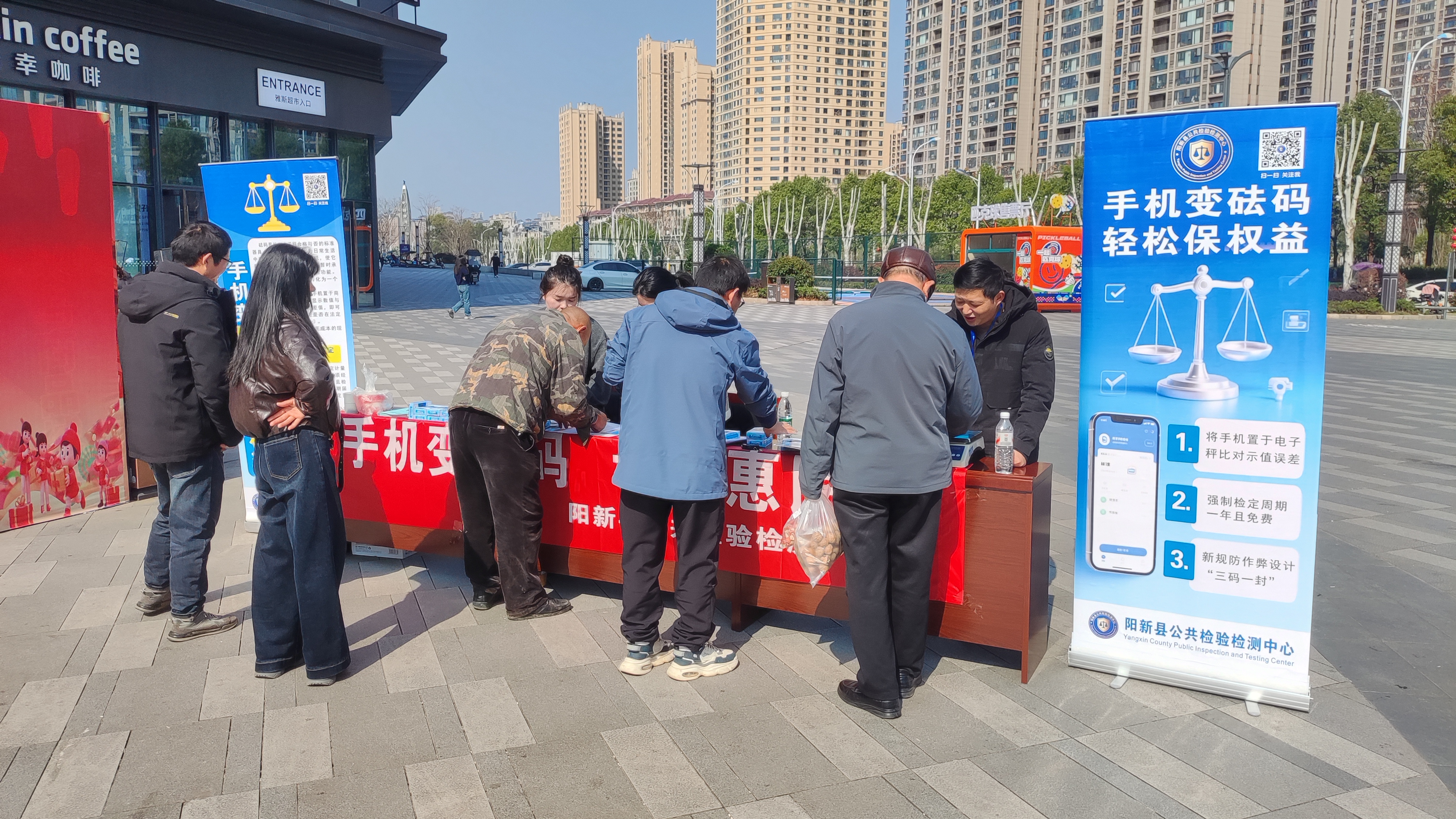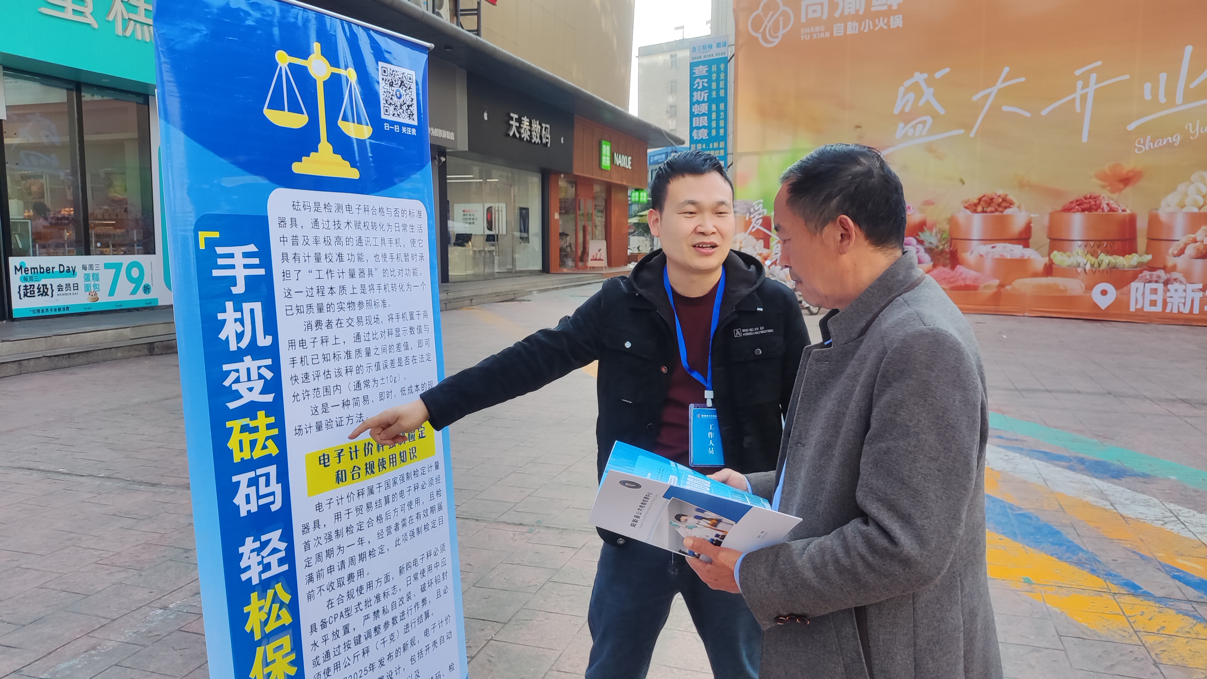 县公共检验检测中心工作人员吴远鹏介绍,在日常工作中,经常接到居民反映,担心在菜市场买菜或购买海鲜时遭遇缺斤短两,但由于缺乏检测工具,往往只能存疑于心。“针对这一现象,我们特意组织了此次宣传活动,主要有两种便民方式:一是‘手机变砝码’,将市民手机放到标准天平上精确称重并标注克数,之后买菜时只需把手机放到商家秤上比对,就能快速判断秤具是否准确;二是针对50岁以上、不太熟悉手机操作的老年群体,我们还准备了便携式标准电子秤,供有需要的居民现场复秤,解决他们的顾虑。”