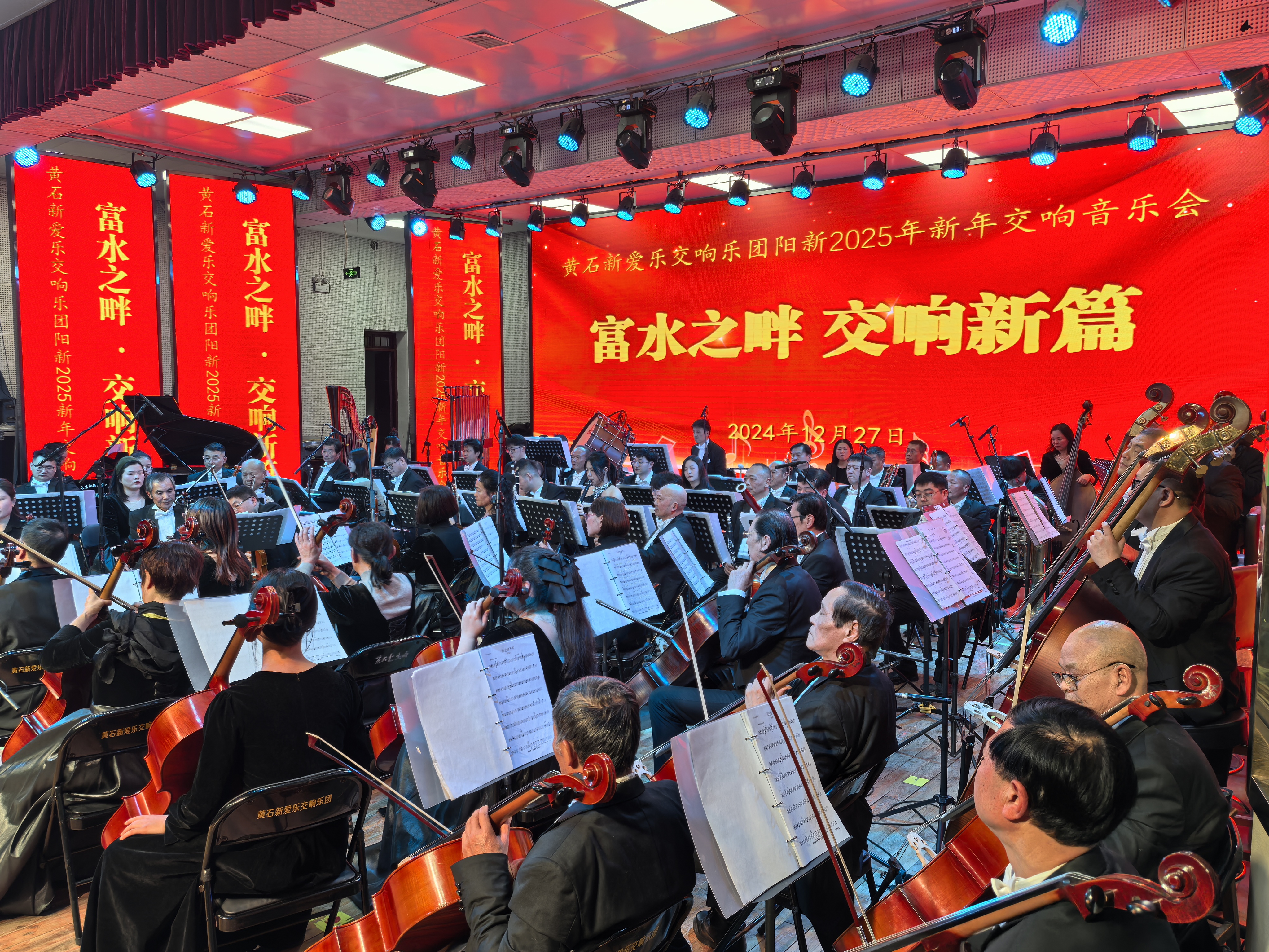 12月27日晚,黄石新爱乐交响乐团走进阳新高中,为师生们带来了一场精彩的交响乐演奏。此次活动由市委宣传部指导、县委宣传部主办,旨在通过交响乐这一高雅艺术形式,提升学生的综合素养,激发学生对音乐艺术的热