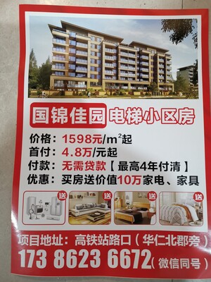 出售宏维·华仁北郡 旁 3室2厅2卫125㎡ 售价18.8万 最低首付4.8万 无需贷款(最高4年付清 无任何利息)买房送价值10万家电 家具