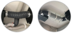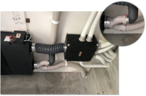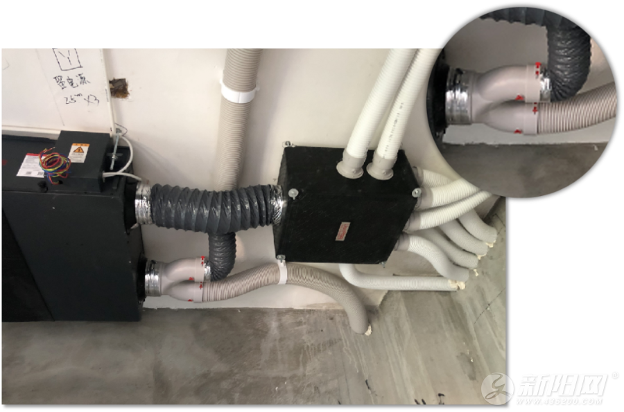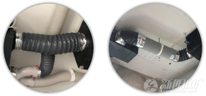 连接处均采用消音管连接,以减小机器运行产生的噪音。风管与新风机的连接处均采用铝箔密封,杜绝风量外泄。