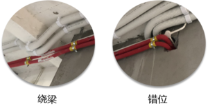 ①管道经过承重梁,选择环绕通过,避免打孔破坏承重梁;导致房屋结构受损;