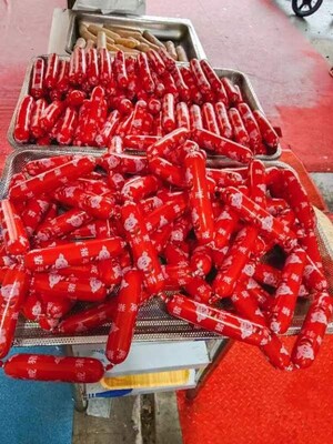 猪半戒火腿肠烤肠加工来阳新啦,自己带肉现场加工,真正的纯肉火腿肠烤肠,吃得放心美味健康,猪肉牛肉鸡肉鱼肉都可加工,无添加防腐剂,李家湾农贸市场18622307706