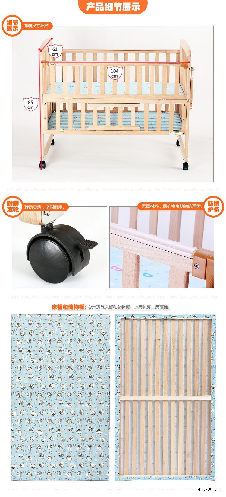 SKYFLAG 德国进口山毛榉木多功能婴儿床 商品描述