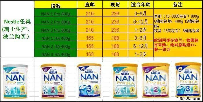 专卖原装进口奶粉(喜宝,牛栏,爱他美,美赞成,雀巢)。所有奶粉均由亲戚荷兰,德国大型超市采购。品质好,价格优。假一罚十。比京东和淘宝的价格都要优惠。为你家宝宝当健康放心奶粉的搬运工。有需要的请电联18671403408